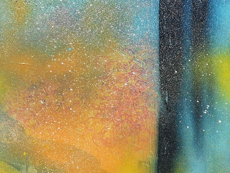 this is an experimental piece of Work on Canvas – with Acrylic Glazing and Spray Paints